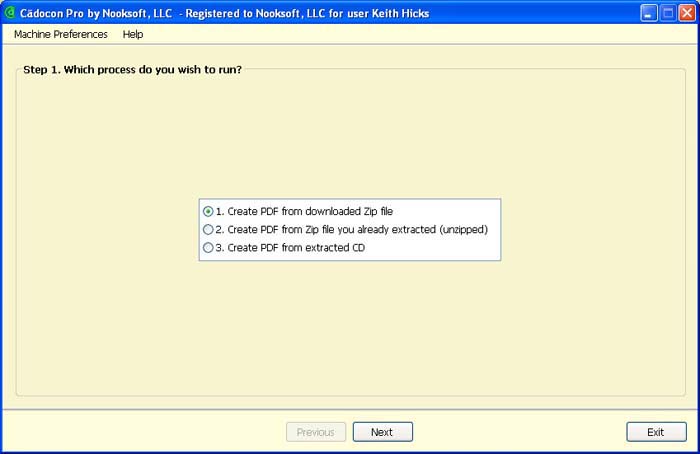 This is the main screen. From here you can choose the process to run, choose the preferences menu option to set preferences or access the help file.